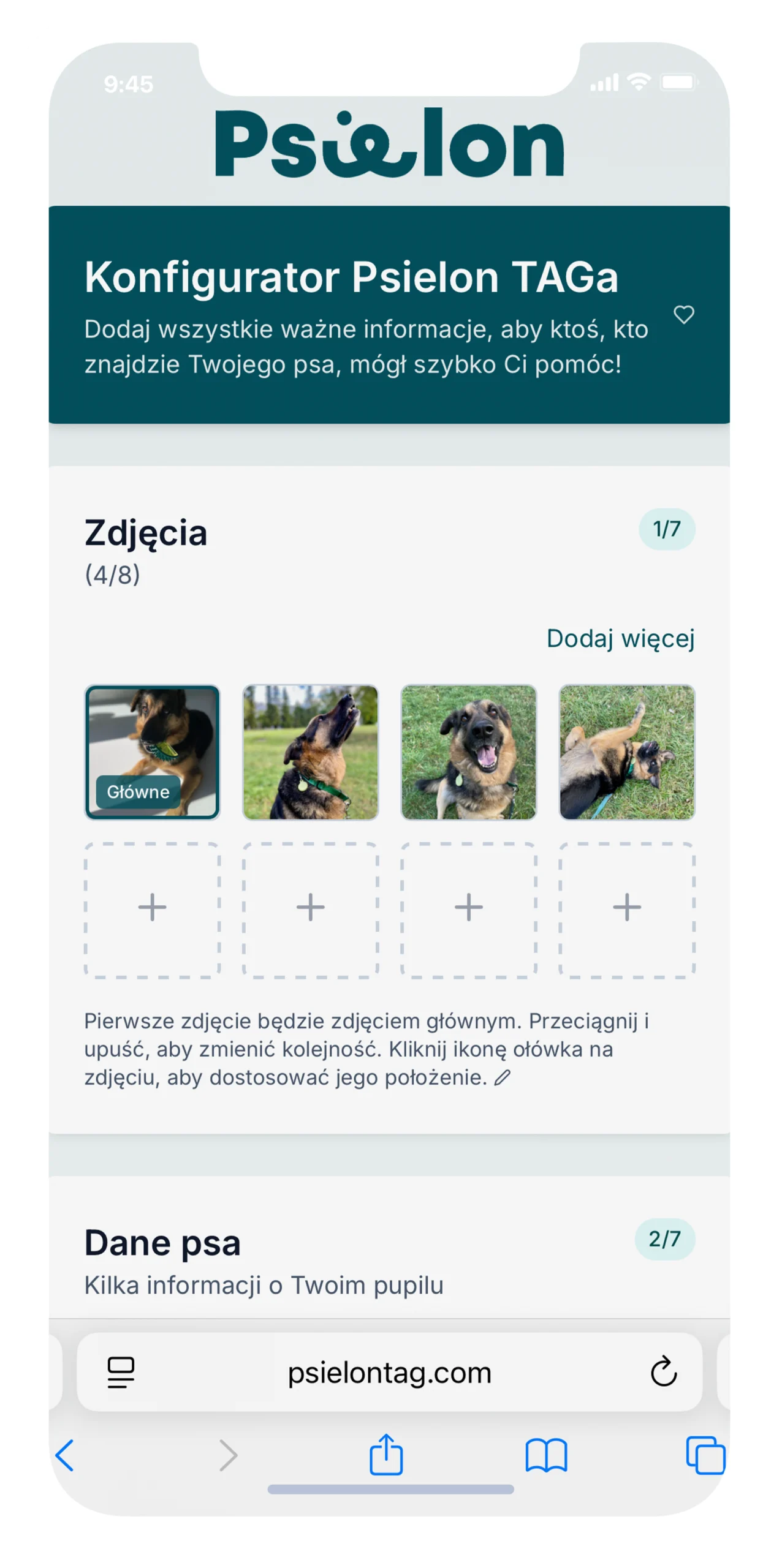 Tak narodził się pomysł założenia Psielon – firmy, która oferuje innowacyjne akcesoria dla psów, w tym PsielonTag. Nowoczesną, cyfrową wizytówkę, która zastępuje tradycyjny identyfikator. Bez aplikacji, bez baterii, bez zbędnego wysiłku. Dotykasz – działa.